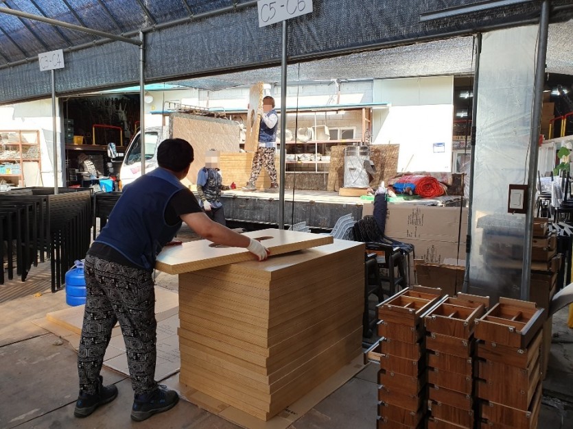 타공된 중고 상판,중고 수저서랍을 납품 작업 준비 중입니다