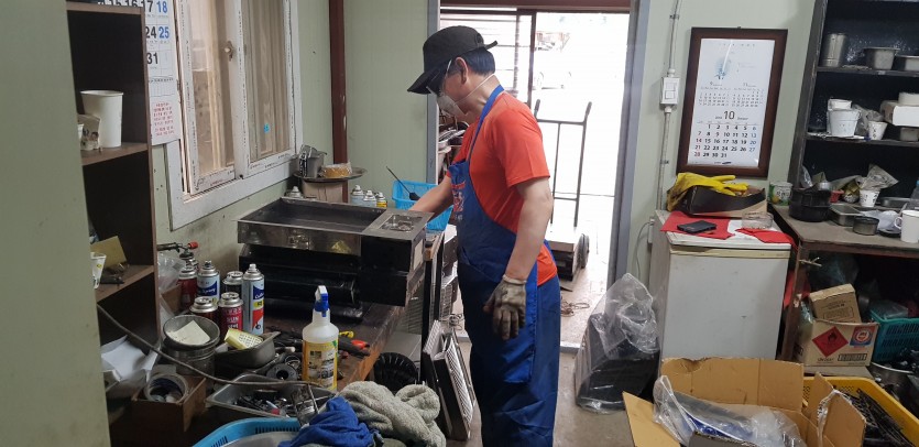 중고 사각 로스타를 보수하여 테스트 작업 중입니다